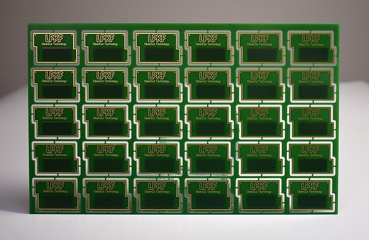 With CleanCut-Technology, LPKF adds a bonus on top and can guarantee maximum technical cleanliness for FR4 applications and thereby ensures that, in additon to dust, no carbonization remains as residues on the material. The integration of thermal energy is specifically controlled during the process so that there is no burning or carbonization of the material at any time.