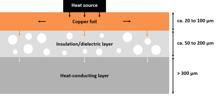 Printed circuit boards with a metal core basically consist of three different layers (see figure):